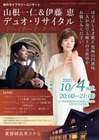 【#伊藤恵 #山根一仁】裏磐梯高原ホテルにてライブラリーコンサートでした🎻🎹素敵なライブラリーの中で音楽をお楽しみいただくこの企画、なんと2人は2013年に開催された初回のコンサートでも共演していたのでした😌次回共演もどうぞお楽しみに🎵 pic.twitter.com/KQUQc6JT3A